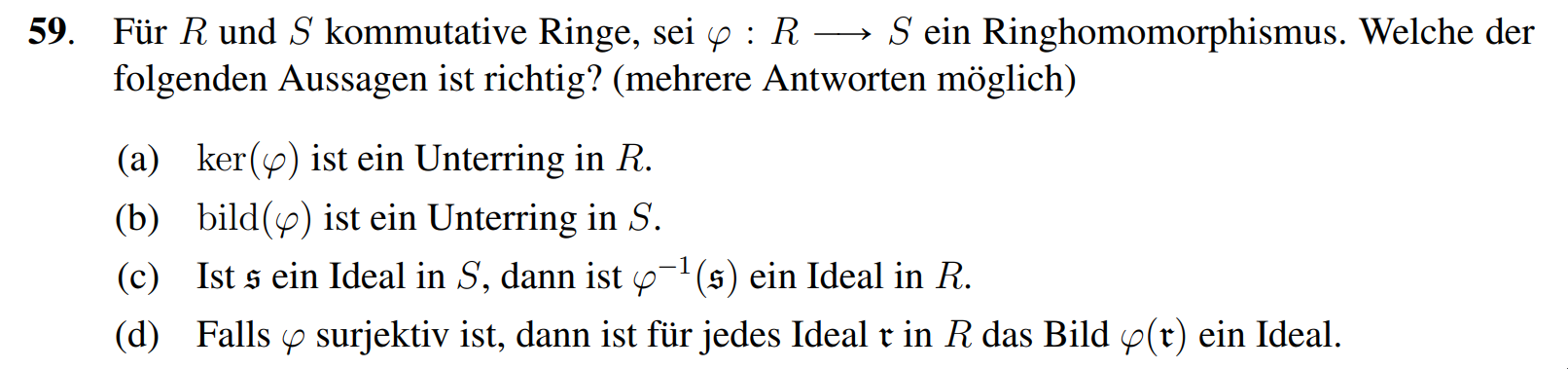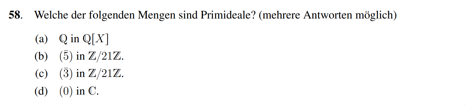 (c) Richtig, es gilt und bildet einen Körper. Also bildet sogar ein maximales Ideal.