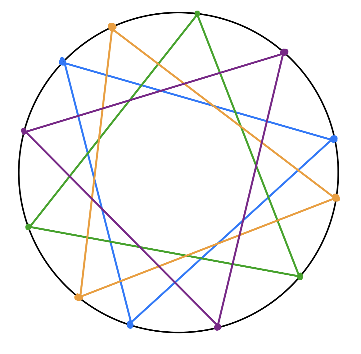Eine, nach obiger Diskusion, sehr natürliche Gruppenoperation ist die Operation von auf den Ecken eines regelmässigen -Ecks. Wir betrachten als konkretes Beispiel den Fall . Sei also